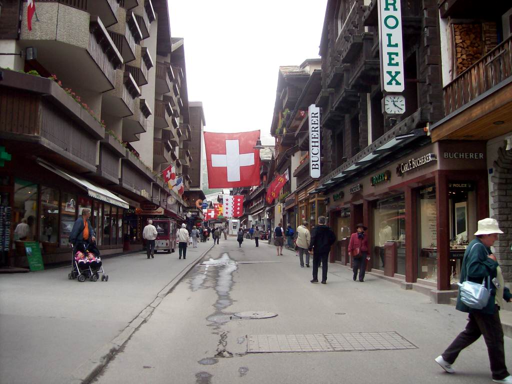 | Am nächsten Tag, es war Sonntag, fuhren wir schon um 7:30 Uhr los. Diesmal ging es nach Zermatt. Zunächst bis Täsch und dann weiter mit der Bahn nach Zermatt und zurück. Leider haben wir das Matterhorn nicht gesehen, dafür hatten wir im Restaurant eine nette Bekanntschaft gemacht, zwei Bauarbeiter aus dem Elsaß, die dort in Täsch arbeiteten. Sie erklärten uns, daß das Matterhorn schon seit 14 Tagen nicht mehr zu sehen war und vermutlich weitere 14 Tage nicht zu sehen ist. Schade, aber einige von uns wollten uns beweisen, daß sie das Matterhorn gesehen haben. Sie haben eine Postkarte fotografiert und uns dann das Bild gezeigt. |
